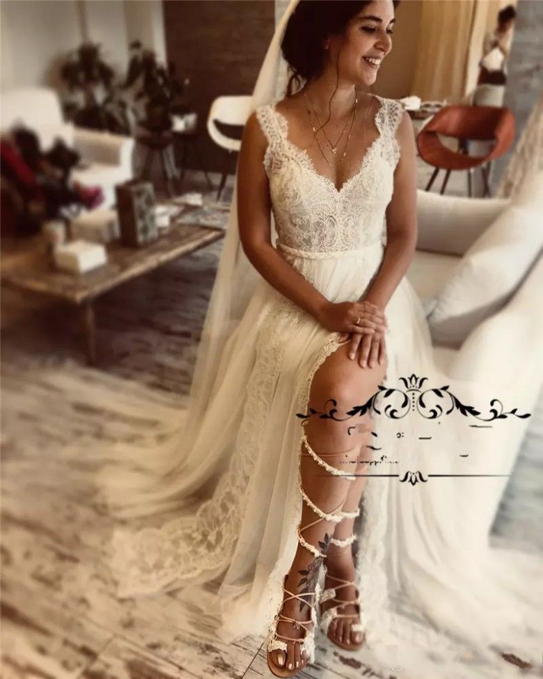 Big Offer Wedding Dress 2019 Spaghetti Strap Beach Boho
