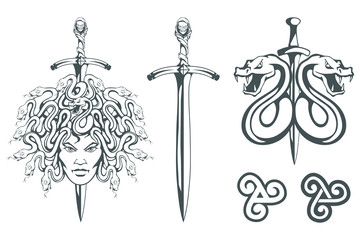 Black Gray Medusa The Greek Mythology Tattoo Golden