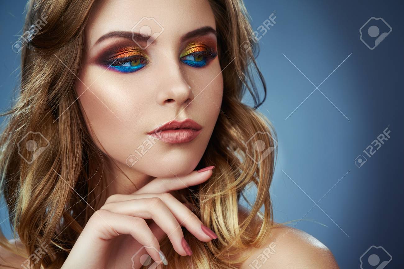 Close Up Fashion Model Woman In Trendy Makeup Eye Models With