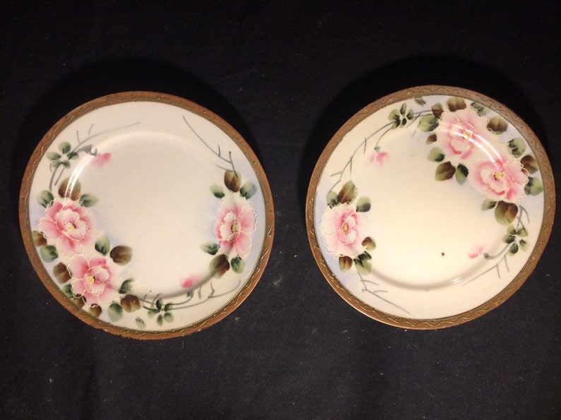 Antique Hand Painted Nippon Plates Apple Or Cherry Blossom Etsy
