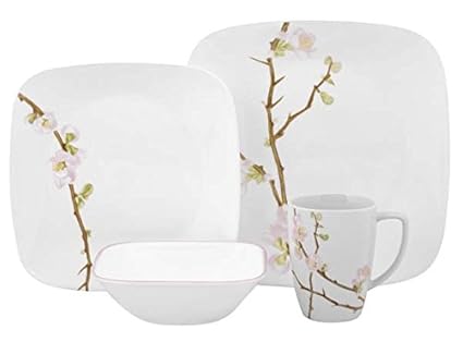 Corelle Cherry Blossom Square Dinnerware Set Serves 4 16pc
