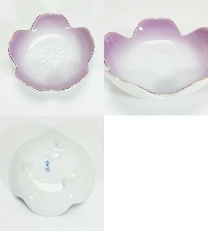 Akusesowaaru Purple Fuchi Gold Cherry Blossom Shaped Dish Large